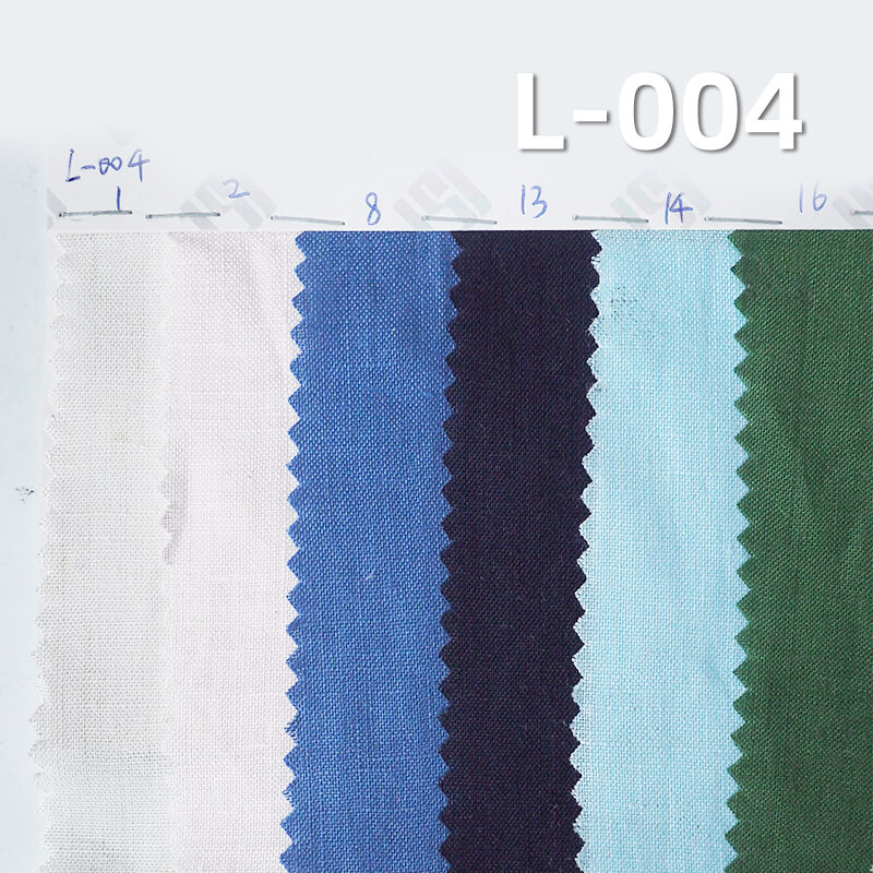 This 100% linen fabric is a dyed fabric with a weight of 140g/m² and a width of 57/58". Its main process involves "plain weave + 100% linen," and the article number is L-004.This fabric offers a soft handfeel, is moisture-wicking and breathable, and provides skin-friendly comfort. Its solid color style is fresh and natural. In the textile market, it is commonly used for manufacturing dresses, skirts, and casual tops.
