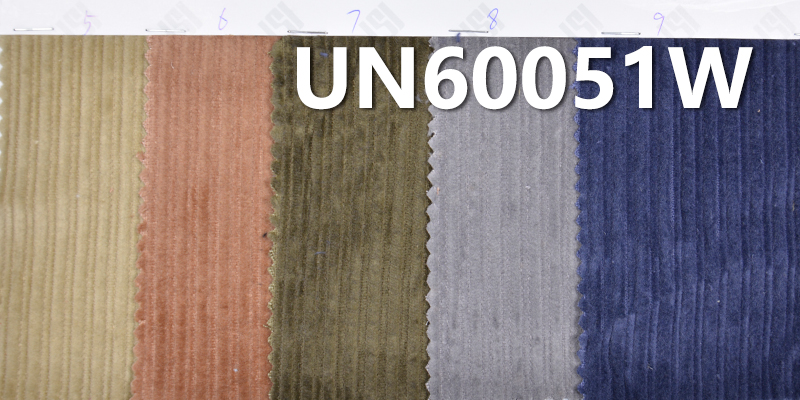 This 100% cotton 8-wale wide-narrow wale corduroy with 3D washing. It is a corduroy fabric with a weight of 310 g/m2 and a width of 43/44 inches. Its main process is "8-wale wide-narrow wale + 100% cotton corduroy," and the item number is UN60051W.This fabric is soft and comfortable to the touch, with clear wales and a three-dimensional feel. It is thick in texture, offers good warmth, and has a soft luster, making it elegant, vintage, and fashionable. In the textile market, it is commonly used for manufacturing hats, pants, padded jackets, and coats.