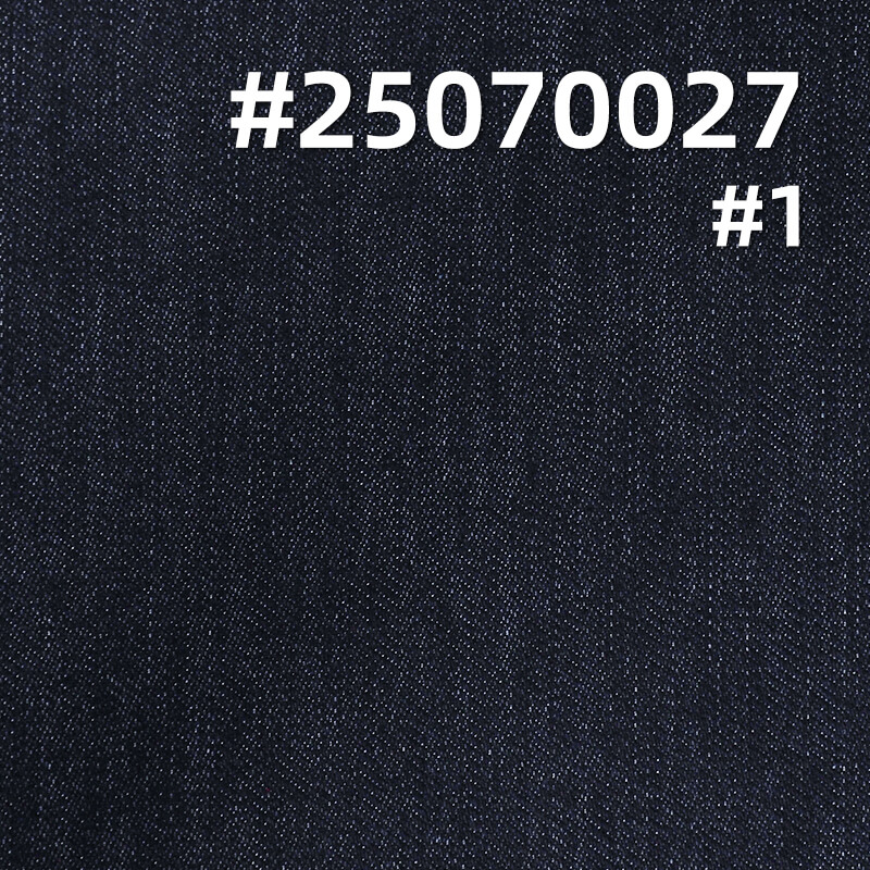 This is our 9.6oz Four-Way Stretch Denim Fabric. It is composed of 75% Cotton, 1% Spandex, and 24% Polyester, with a weight of 9.6 ounces (oz) and a width of 68/69 inches. The main processes involved are "Four-Way Stretch Denim +Twill". The article number is #25070027.This four-way stretch denim offers a soft handfeel, clear texture, and is versatile for various styles. Notably, the fabric incorporates Spandex fibers, providing excellent elasticity for a comfortable wearing experience.